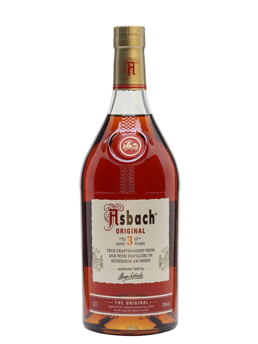 Asbach is a fine and noble distillate. Through traditional distillation, careful storage for at least 3 years in Limousin-oak casks and the secret Asbach maturing and refining process, Asbach Original aged 3 years acquires its unique and distinctive taste.