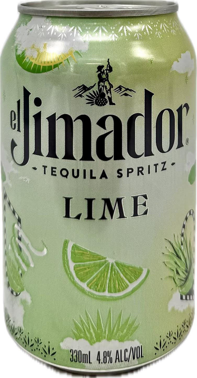 The El Jimador Lime Spritz Tequila 330ml Cans are a ready-to-drink, tequila-based spritzer with a 4.8% ABV, featuring the flavors of a classic margarita with a zesty, spritzy tingle. The drink is made with 100% blue agave tequila and has notes of bright lime zest and subtle agave, making it a convenient, pre-mixed option for social gatherings or relaxing.