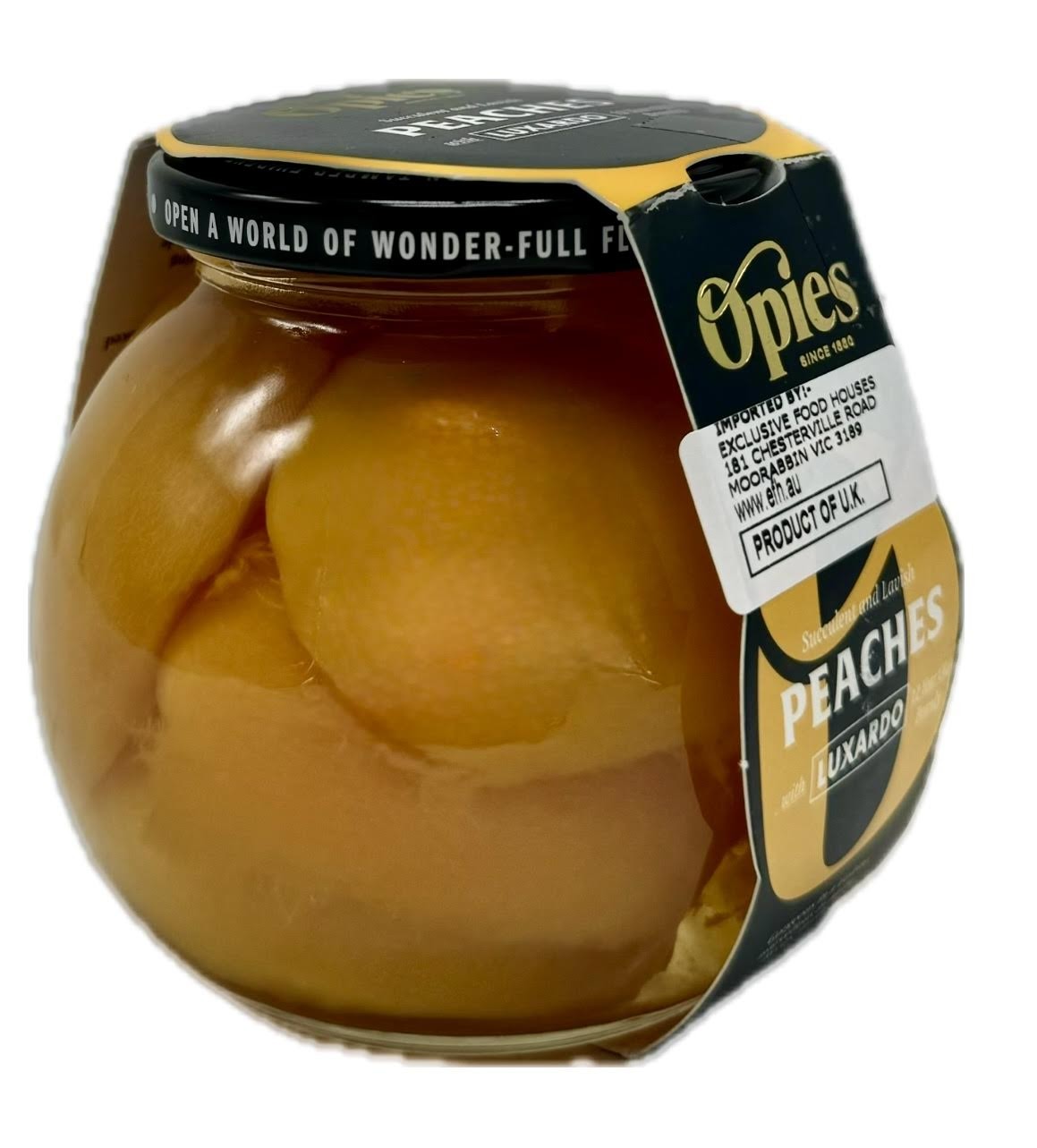 Opies Peaches are deliciously sweet, plump, ripe peach halves preserved in a light syrup laced with 12 year old aged Brandy.
