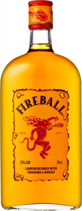Fireball; produced by the Sazerac Company. Rumor has it that Fireball Whisky was forged sometime in the mid-80s during the coldest winter Canada had ever seen, when a mixologist turned mad scientist accidentally created a permanent solution to frostbite.