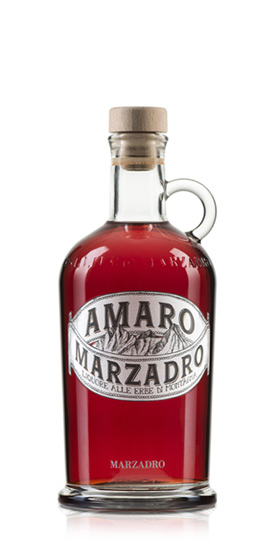 Amaro Marzadro is inspired by ancient recipes for herbal liqueurs from Trentino tradition. Starting in the 1950s, Attilio and Sabina Marzadro gathered plants and herbs with which to aromatise their spirits on Monte Baldo, at 2218 metres above sea level. In the same way, today, alpine rhubarb, great yellow gentian, white bryony, chamomile, fennel, St. Benedict's thistle, goat's rue and different varieties of yarrow are picked by hand and then undergo cold maceration for a period ranging from 20 to 30 days. Its red colour is caused by the rhubarb, which gives the liqueur a taste that is bitter and cool at the same time.