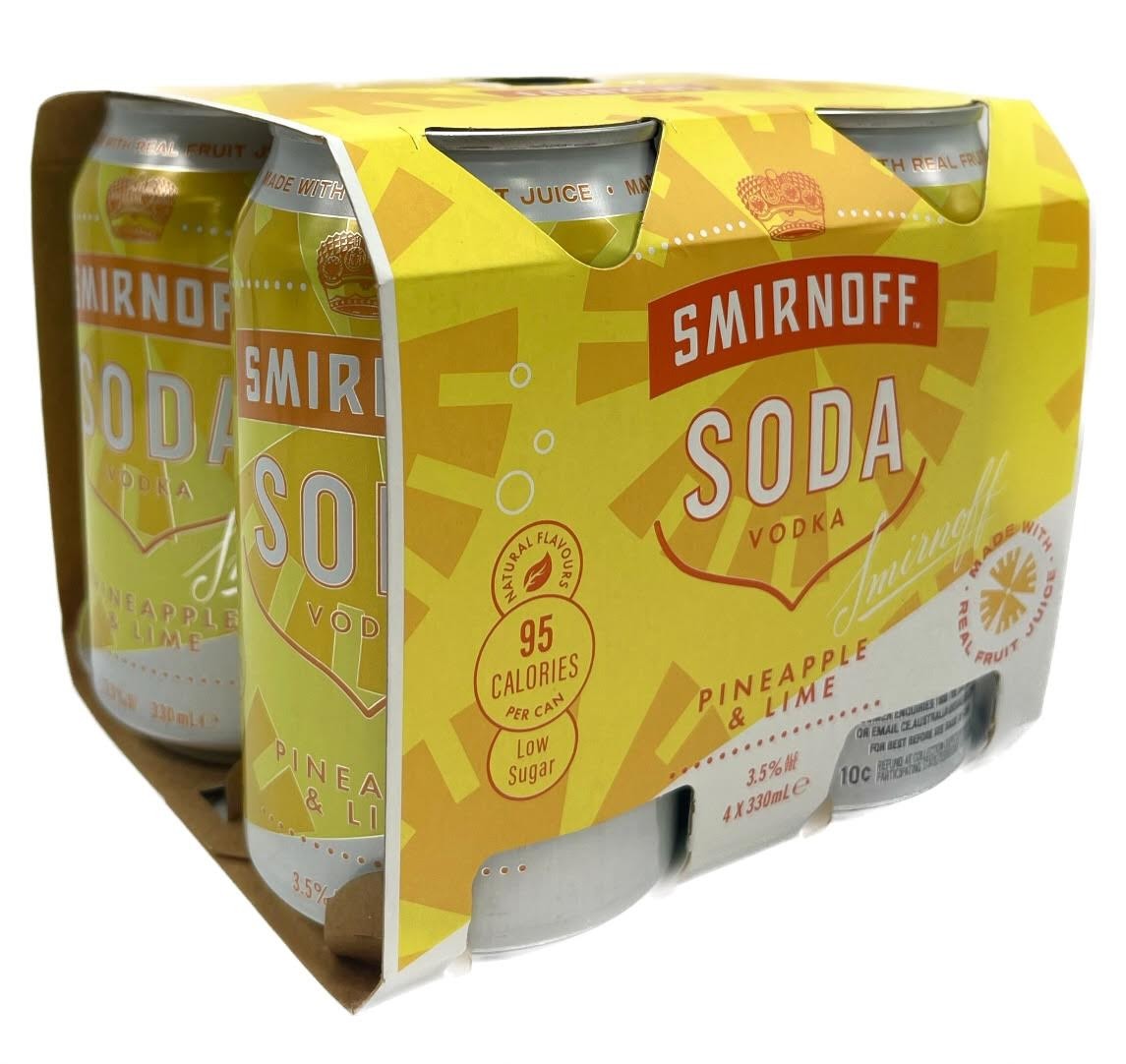 Natural pineapple and lime flavour expertly mixed with vodka, topped with soda water. Best served ice cold for a crisp and refreshing taste. Made with real fruit juice.