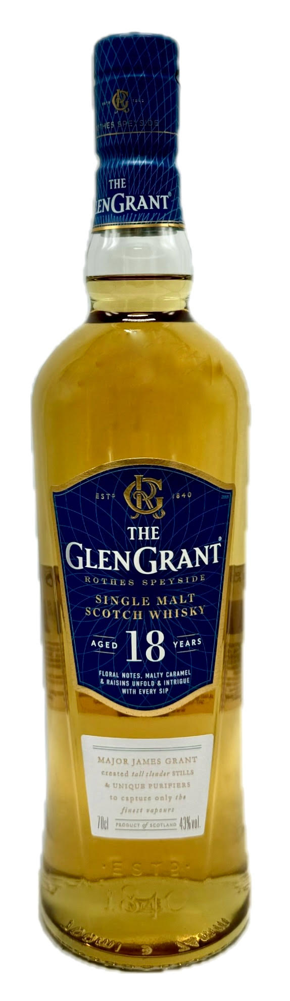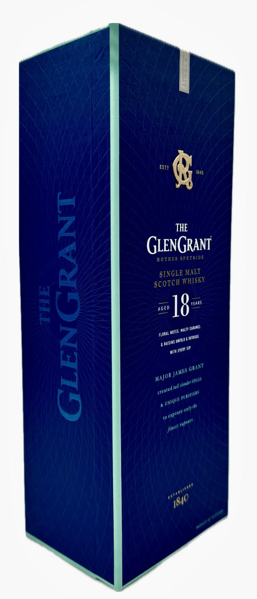 The Glen Grant 18 Year Old Scotch Whisky matures in the highest quality, handpicked oak casks, which creates a radiant golden colour and seductive floral and oaky aroma. Deeply layered and complex, this rich and vibrant whisky delivers beautifully intricate flavours of malted caramel, vanilla and raisins and lingers with a long, sweet and pleasantly spicy finish.