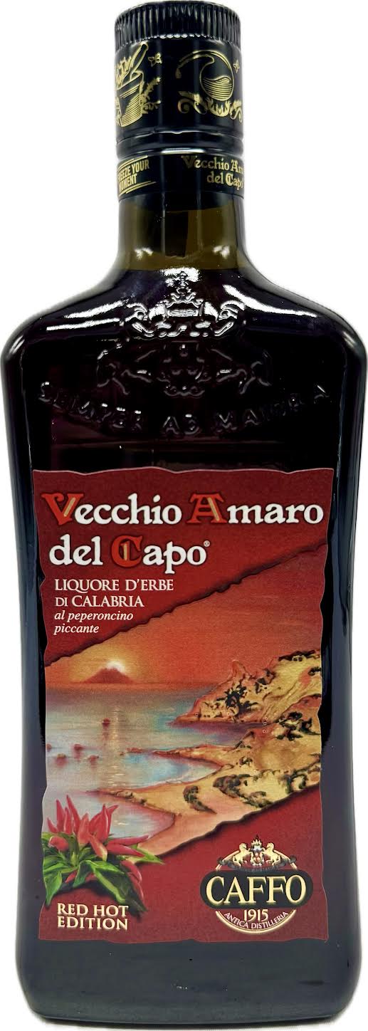 Vecchio Amaro Del Capo Chilli is a spicy and fiery Italian amaro with a hot pepper infusion, described as energetic, exciting, and burning. It combines the original recipe's blend of Calabrian herbs, flowers, and fruits with the piercing taste of Calabrian chili pepper. The liqueur offers a soft, aromatic experience with citrus notes from the base recipe, followed by a pleasant spicy touch and a lingering warmth