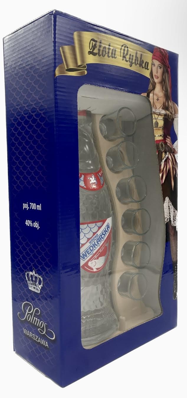 Fishing Fish Vodka, this vodka was produced using a traditional method based on grain spirit, thanks to which it has a mild taste with delicate herbs and peppers. The water used to produceed this vodka is taken from deep wells and the whole complemented by a phenomenal bottle imitating a fish