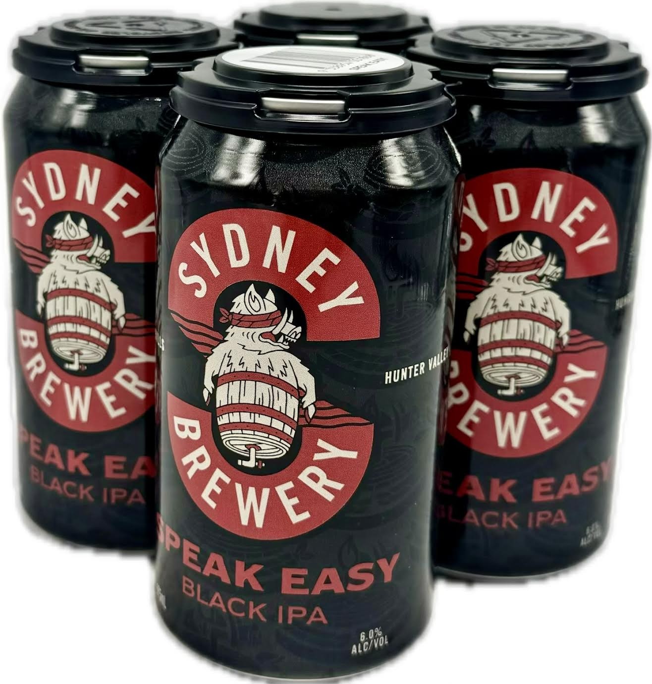 Sydney Brewery's Speak Easy Black IPA is a 6.0% ABV beer that pours dark and smooth. It features a big dry hop of Citra, Amarillo, and Chinook, providing a bold citrus aroma. The beer also has subtle dark malt characters with notes of caramel and toffee. It's described as extremely drinkable for a Black IPA.