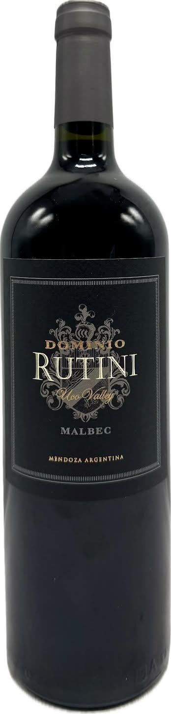 Dominio Rutini Malbec is an Argentine red wine from the renowned Mendoza region, characterized by its bright ruby or garnet color, with notes of ripe red and black fruits (like plums and blackberries), floral violet, and hints of spice and vanilla from oak aging. The palate features juicy flavors, balanced acidity, and silky, gentle tannins, leading to an elegant and satisfying finish that pairs well with grilled meats, rich pasta sauces, and aged cheeses.