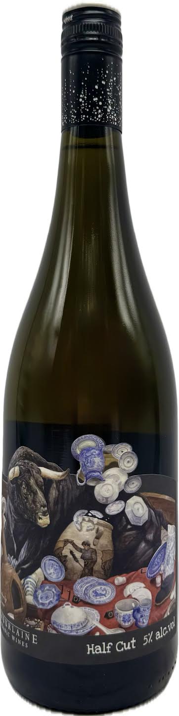 Bull In A China Shop Piquette (specifically the "Half Cut" version from Tamburlaine) is a light, low-alcohol, off-dry, lightly sparkling wine made from rehydrated organic Gewürztraminer and Sauvignon Blanc skins, offering herbal citrus, floral notes, and a prickly, kombucha-like fizz with hints of honey and rose petal, described as a fresh, aromatic, and fruity drink best enjoyed young.