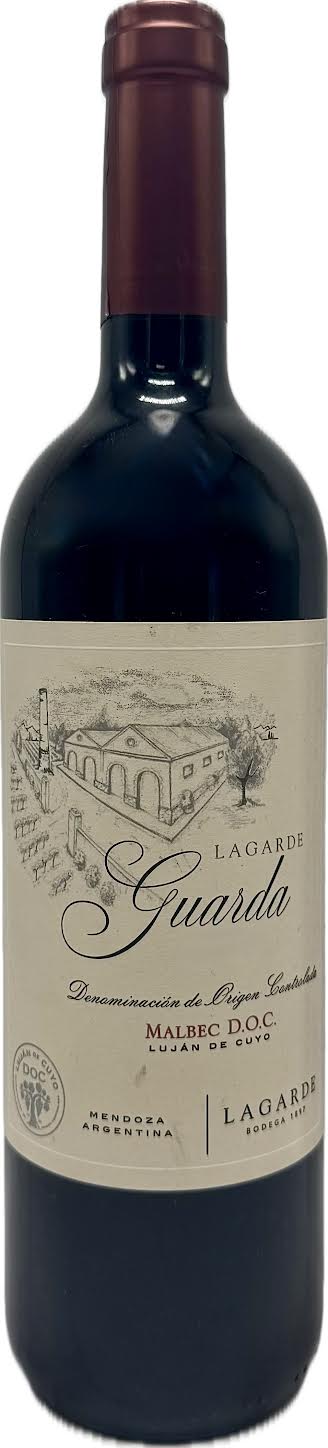 The Lagarde Guarda Malbec D.O.C. is a premium, full-bodied Argentine Malbec from Luján de Cuyo, known for its intense black fruit (blackberry, plum, cherry) and floral (violet) aromas, complemented by notes of oak, vanilla, cocoa, and spice from French oak aging, offering silky tannins, good structure, and a long, smooth finish, making it ideal with roasted meats or aged cheeses.
