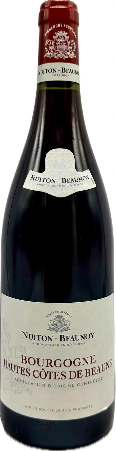 The Nuiton-Beaunoy Hautes-Côtes de Beaune Rouge is a French Pinot Noir from Burgundy, characterized by its purple color and aromas of red and black berries, such as strawberry, redcurrant, and blackcurrant, with hints of toast or oak. It's known for its smooth, supple texture, silky tannins, a long finish, and a generally well-balanced profile that is often described as suitable for drinking relatively soon after release.