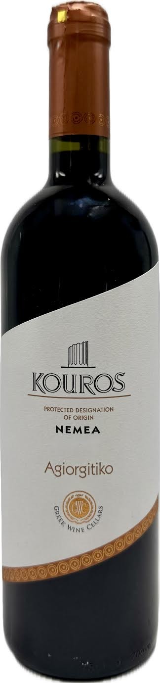 Kouros Nemea Agiorgitiko is an award winning red dry wine made from Agioritico grapes from the vineyards of Nemea, Greece and produced by Kourtaki. Medium bodied wine with a core of fresh berries and plums. A brilliant deep-red color with violent hues; a rich aroma and a soft yet full palate; and a full vanilla-scented after-taste.