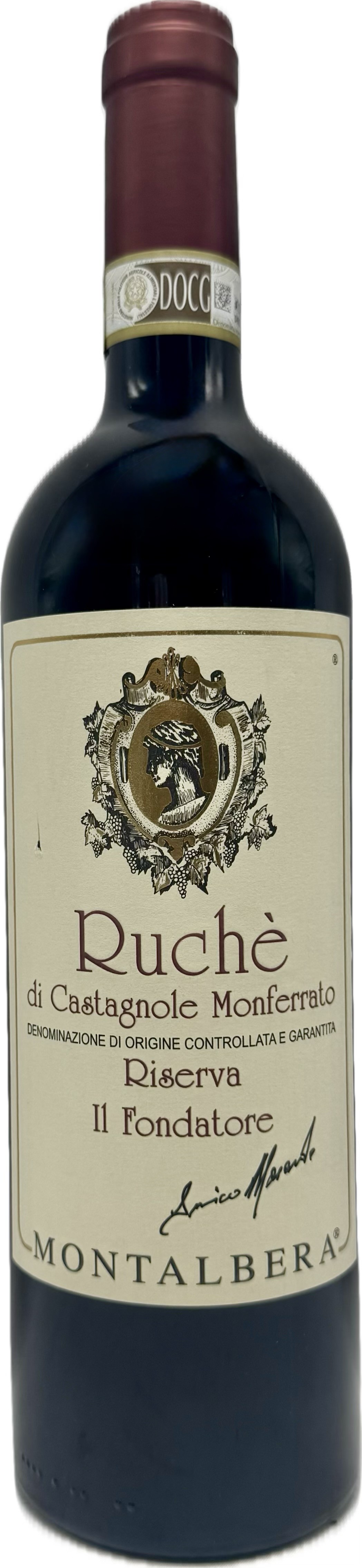 Montalbera's Ruchè di Castagnole Monferrato Riserva "Il Fondatore" is a full-bodied, complex Piedmontese red wine made from 100% Ruchè grapes. It's known for its intense, persistent, and aromatic nose with notes of wild berries evolving into oriental spices and black pepper. The wine is powerful on the palate, with great persistence and a balanced finish. It ages in French oak barrels for a period between 10 and 14 months, depending on the vintage. The wine is ruby red tending to garnet with aging, and pairs well with red meat dishes, roasts, and mature cheeses