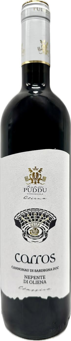 Puddu Carros Cannonau Di Sardegna Nepente Oliena is a Sardinian red wine known for its intense, fruity, and spicy character. It is made from 100% Cannonau grapes, a variety symbolic of Sardinia, grown in the Oliena subzone. This wine is celebrated for its rich, full-bodied structure, delicate tannins, and aromatic complexity, often featuring notes of red fruit, spices, and Mediterranean scrub