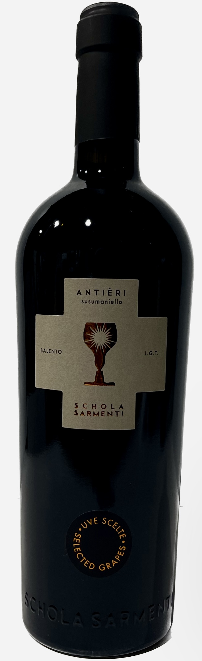 ANTIERI Susumaniello is a decisive, fresh, balanced wine with a great body. It has an intense and impenetrable ruby red colour. A wine that knows how to be strong but gracefully, managing to impress with its complex and delicate aromas. It has fruity and spicy notes in which blackberries, ripe cherries, black pepper, vanilla and cloves stand out. In the mouth it concludes with a very long persistence in the mouth. A great Susumaniello that enriches the offer of this great Salento winery.