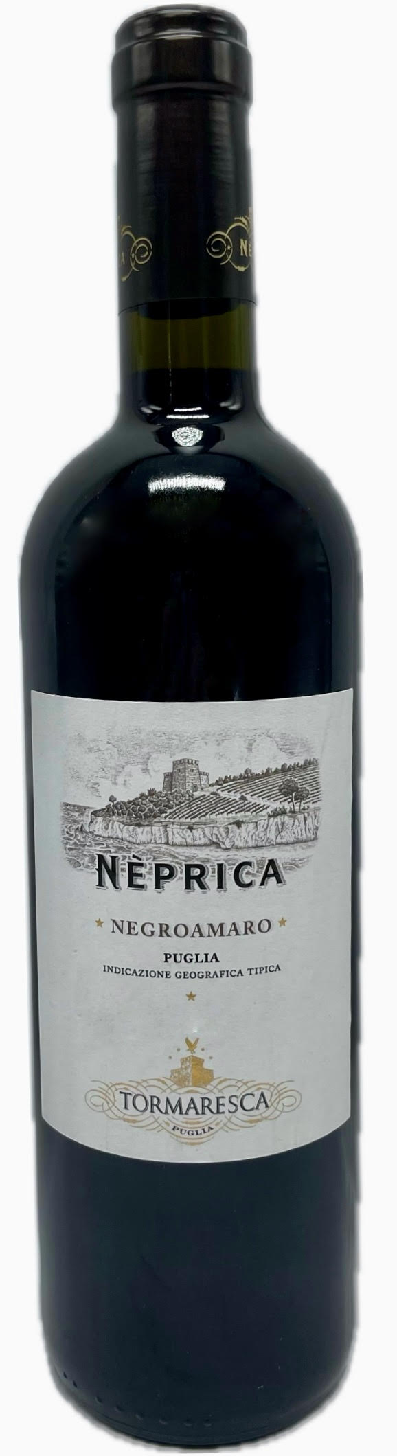 NEPRICA Negroamaro is ruby red with light violet hues. The nose offers notes of cherries, floral aromas of dog rose, sweet violets, and light spicy sensations of pepper and tobacco. A soft entry on the palate is defined by supple tannins and accompanied by excellent freshness and a pleasantly fruity finish.
