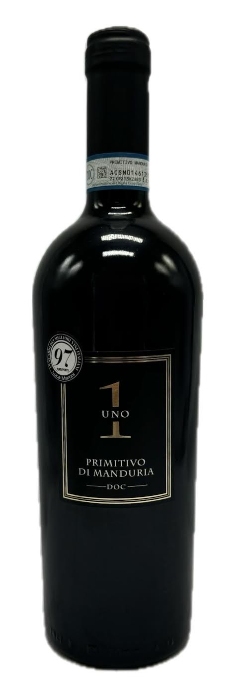 This Italian wine is an intense ruby red in the glass, offering strong aromas of plums, cherries and elderberry on the nose. On the palate, the Uno Primitivo di Manduria is very juicy and full-bodied. Velvety tannins and a well-integrated acidity make this red wine from Apulia supple and round.