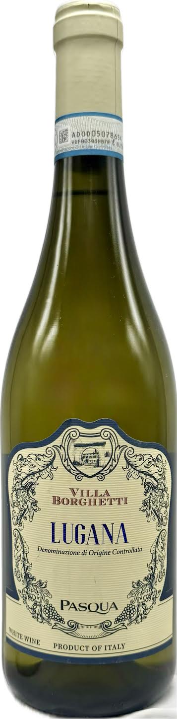 Villa Borghetti Lugana is a crisp, straw-yellow Italian white wine from the Veneto/Lombardy region, produced by Pasqua Vigneti e Cantine. Made primarily from 100% Turbiana (Trebbiano di Lugana) grapes, this dry, mineral-forward wine features delicate aromas of white flowers, almond, and fresh tropical fruit. It offers a balanced acidity and a savory, fresh palate suitable for pairing with fish and appetizers. Lugana wine is ideally combined with a cheese platter/ charcuterie, salads, pasta, risotto with vegetables or seafood or fish, white meat.