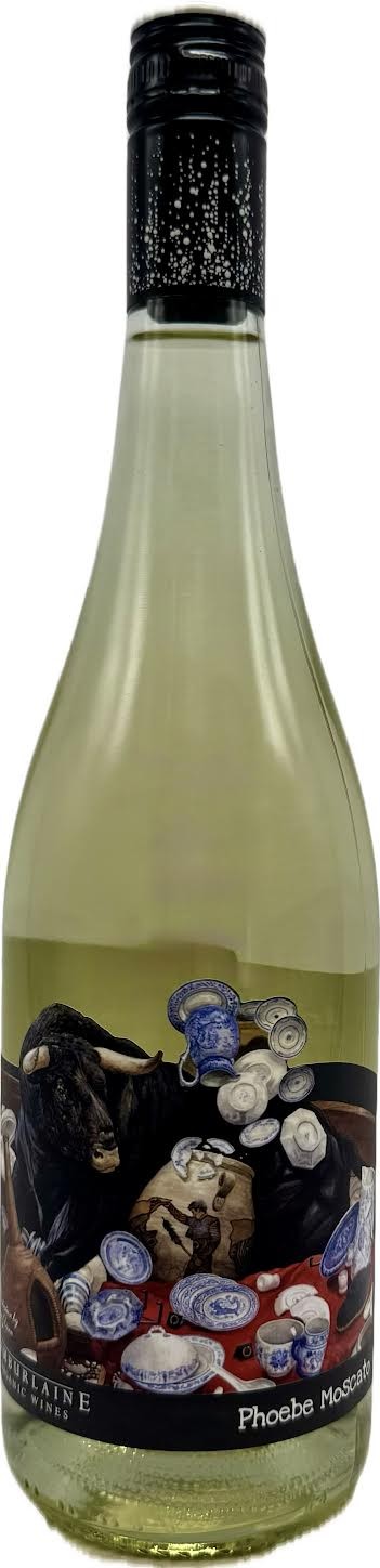 Tamburlaine Organic Wines Bull In A China Shop Phoebe Moscato by Tamburlaine Organic Wines is a light, naturally sweet, organically farmed Moscato with aromas of musk, rose, strawberry, and herbs, featuring juicy peach and orange blossom flavors, a light spritz, and a "Precious Dewdrop" color, best enjoyed young with light cheeses or fruit.