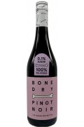 Bone Dry Pinot Noir generally refers to a style of Pinot Noir that is dry, meaning it has very little or no residual sugar. It's often characterized by a crisp, refreshing taste with notes of red fruits like cherry and raspberry, along with hints of spice or earthy undertones, depending on the wine's origin and aging.